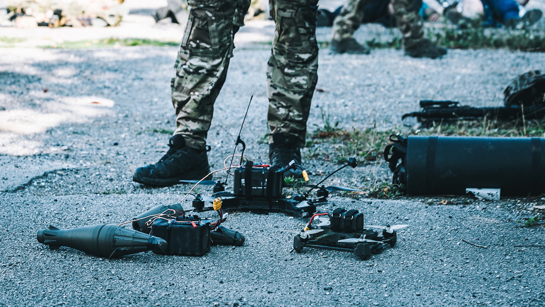 Airsoft replika, taktička oprema (taktički prsluk i zaštitna kaciga), FPV, bombarder i ISR dronovi, aktivna zaštita za sluh, zaštitni vizir za lice i podveska (TQ).